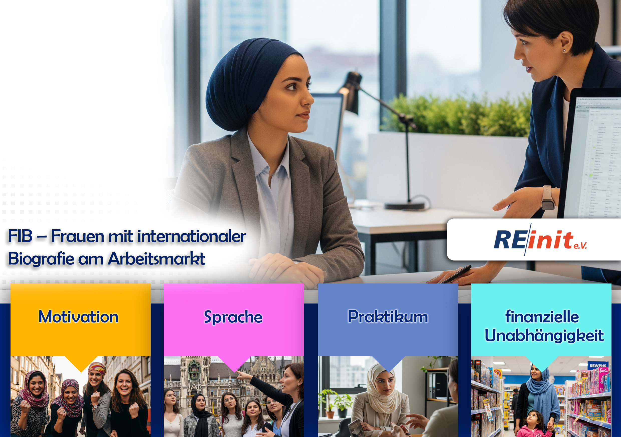 Das Projekt FIB richtet sich an Frauen mit Migrationshintergrund bis 35 Jahre, die Leistungen nach dem SGB II beziehen.