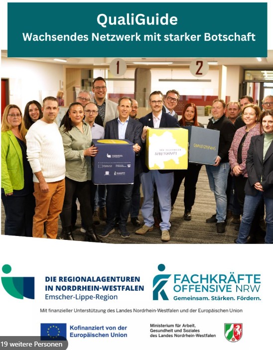 Das QualiGuide‑Netzwerk verbindet Akteur*innen der Emscher-Lippe-Region aus (Weiter-)Bildung, Arbeitsmarkt, Wirtschaft und Verwaltung mit dem Ziel, Qualifizierung sichtbar zu machen und gemeinsam Wege in die Zukunft zu gestalten.